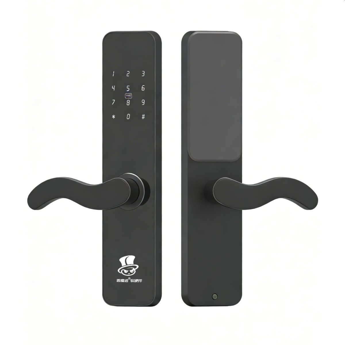 泰安这款智能门锁提供室内门锁和防盗门锁两种选择,其中室内门锁尺寸为 2806521mm,适配 5050 锁体;防盗门锁尺寸为 3657021mm,适配 6068 锁体,可满足不同场景的安装需求。它采用铝合金一体成型搭配钢化玻璃面板打造,兼具坚固耐用的品质与简洁美观的视觉效果。门锁支持蓝牙无线通讯,解锁方式丰富多样,密码、卡片、蓝牙、钥匙四种方式随心选择,满足不同使用习惯与应急需求。其工作温度范围为 - 20~70℃,能适应多数地区的气候条件,采用碱性电池供电,安装更换便捷,是兼具安全性与实用性的门锁选择。